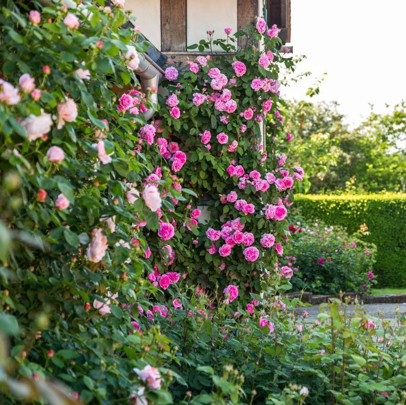 A short climber, it is always one of the first English Roses to start flowering, its perfect scrolled buds open to large, rosette-shaped flowers of bright glowing pink. The strong, perfectly balanced Old Rose scent is often described as being the quintessential Old Rose fragrance. Named for the famous garden designer and author. David Austin, 1986.